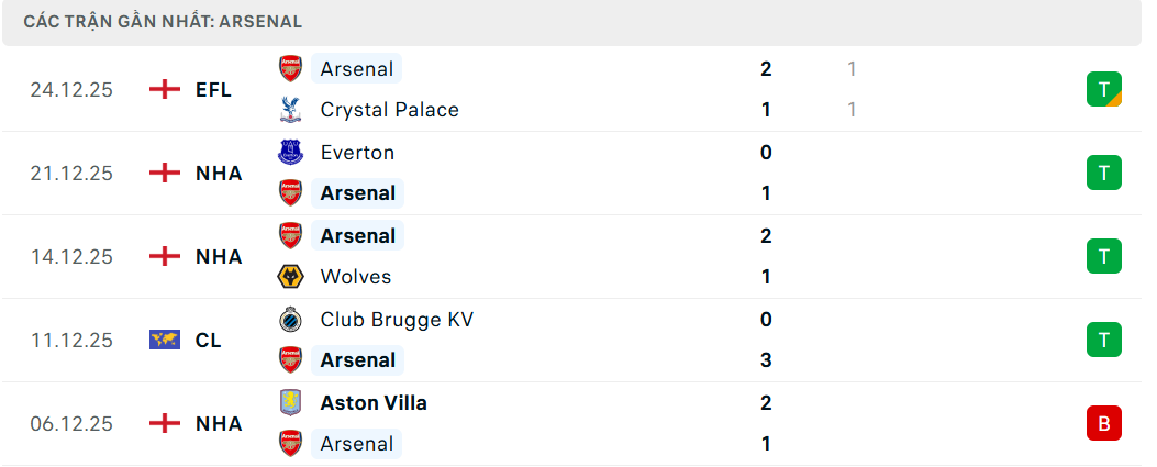 Phong độ Arsenal đang dần ổn định trở lại sau thất bại trước Aston Villa khi họ giành được 3 chiến thắng và 1 kết quả hòa trước Crystal Palace tại League Cup (thắng Penalty). Điều đó giúp họ tự tin trong cuộc tiếp đón Brighton đêm nay.
