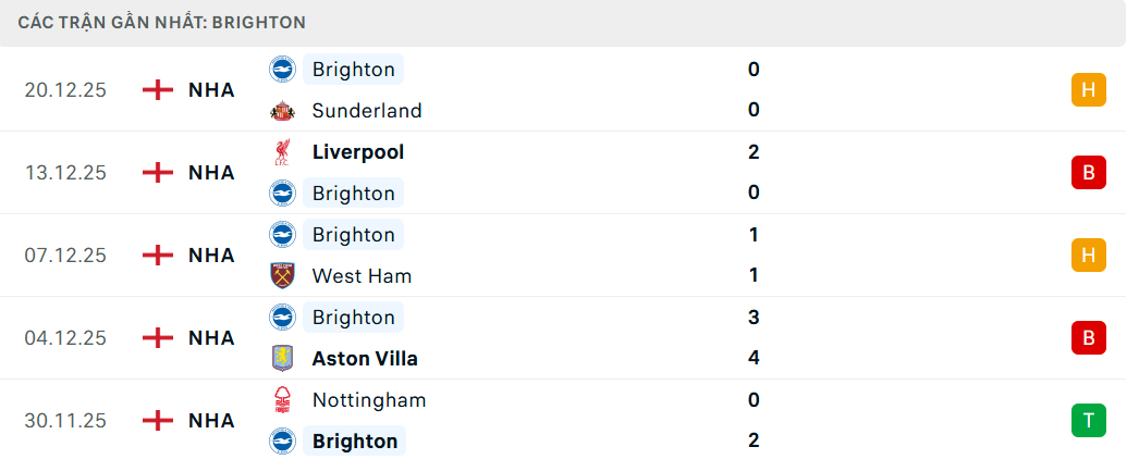 Brighton đang sa sút nghiêm trọng, 5 lần ra sân liên tiếp vừa qua họ chỉ có được duy nhất 1 chiến thắng. Đáng chú ý, ở chuỗi trận kể trên họ đều phơi áo trước các đối thủ nằm trong Top 6 như Liverpool và Aston Villa. Rất khó để các vị khách làm nên bất ngờ ở 90 phút sắp tới!